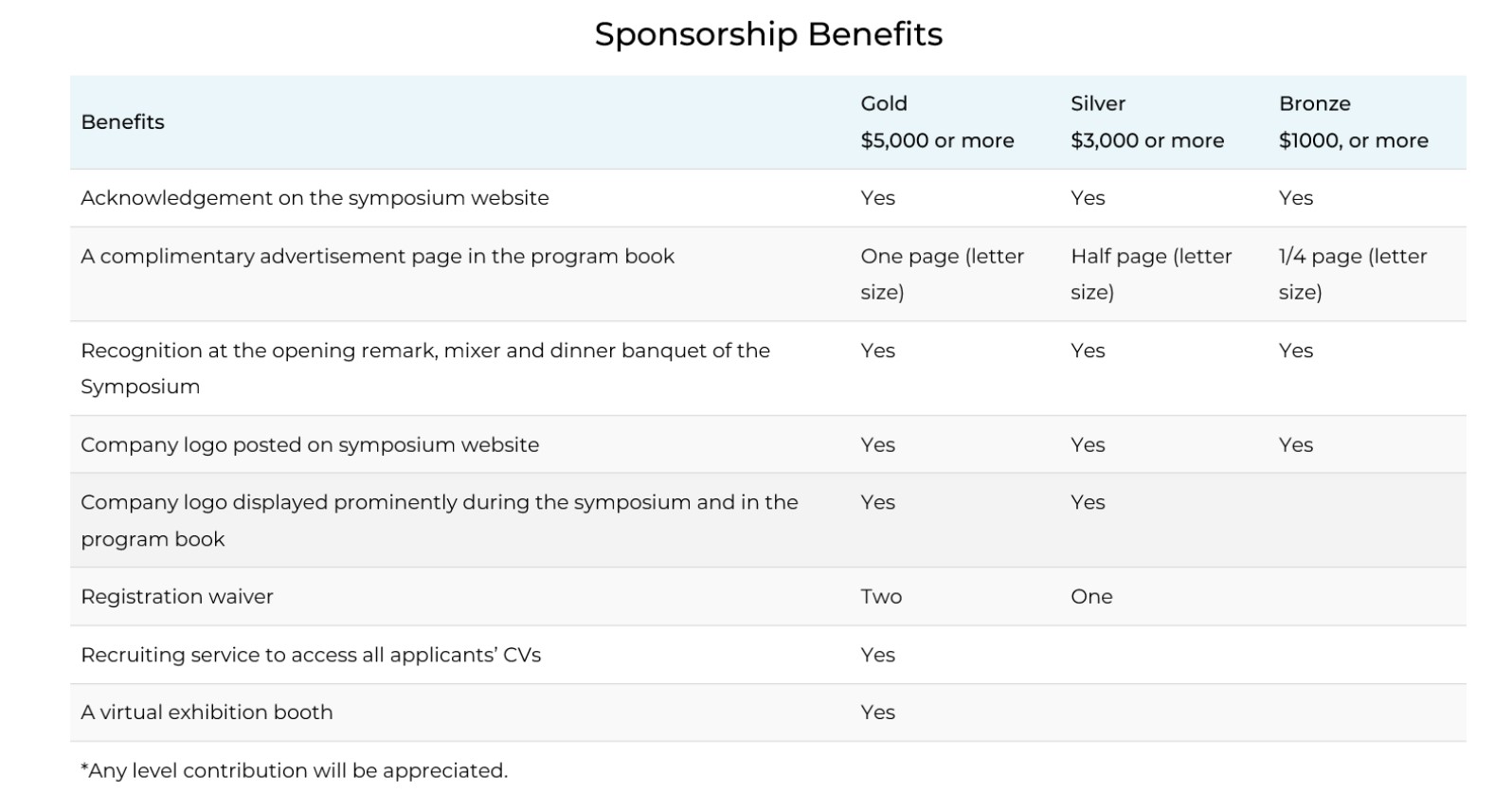 Sponsors will have the opportunity to reach a broad audience through ICSA 2023 China Conference. For sponsorship opportunities and benefits, please refer to the table below.